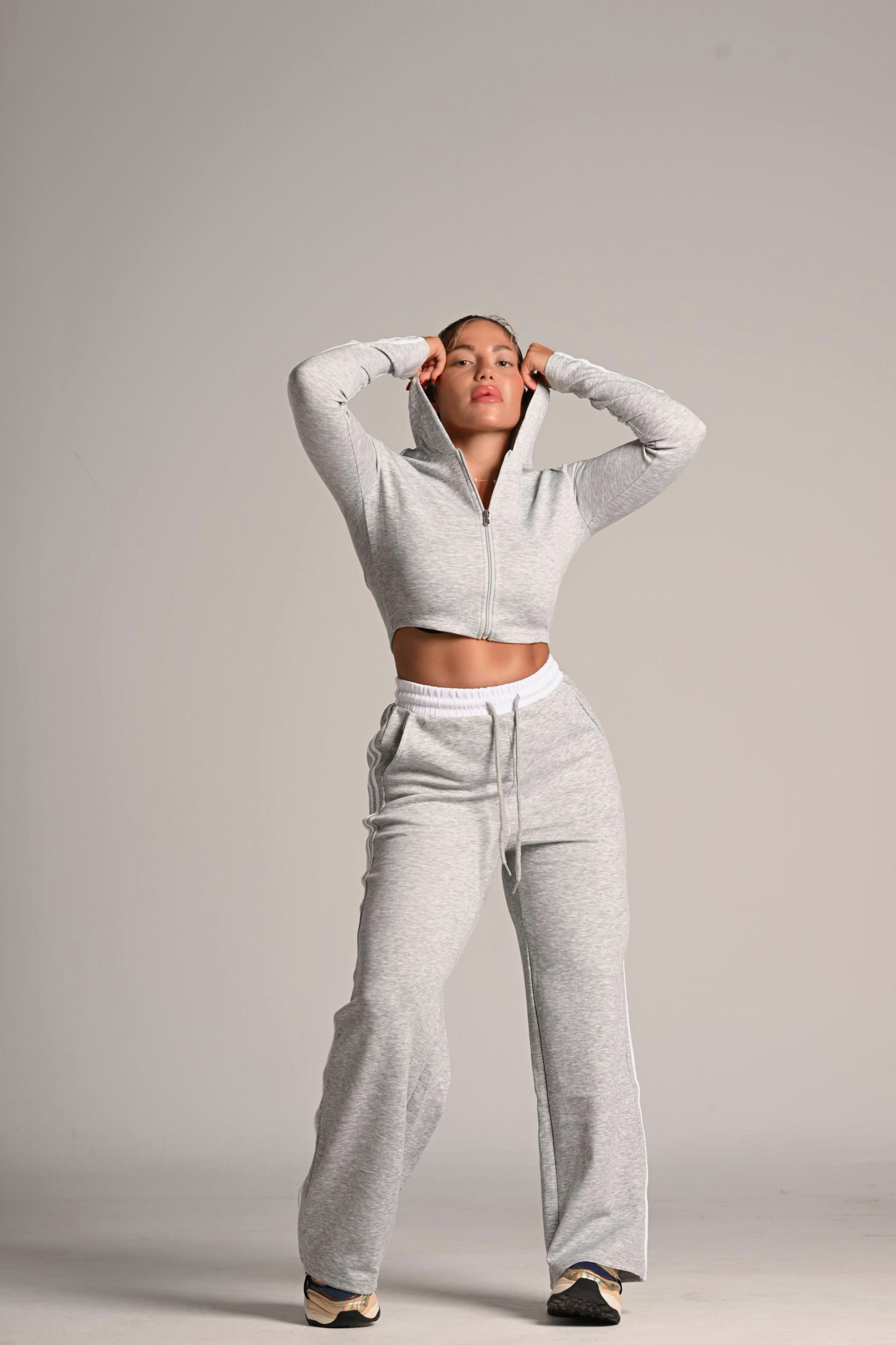 αθλητικό άνετο σετ με cropped ζακέτα και κουκούλα